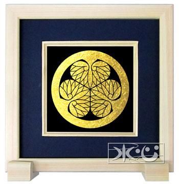 いわゆる 徳川将軍家の紋章であります。 葉脈の本数が違う三つ葵にも応対しておりますので、 心配な場合は画像をメールに添付してくださるようお願いいたします。 二十四金の金箔で描き、木曽檜の額におさめてお届けするものであります。 額サイズ 縦 本体19.5cm 足を付けたとき20.0cm 横 19.5cm 厚さ 本体3cm 足を付けたとき6.0cm 足を付けると立てることが出来る 掛け・立て両用となっております。 お飾りいただく場所の自由度が高く 建築様式や間取りを選ばずにお使いいただけます。 新築・改築・転居のお祝いの贈り物、 御当主・跡取り・お孫さんの誕生日の記念品 節目のご法事の記念品など 御家 親族の 節目にお勧めの 特別な記念品であります。